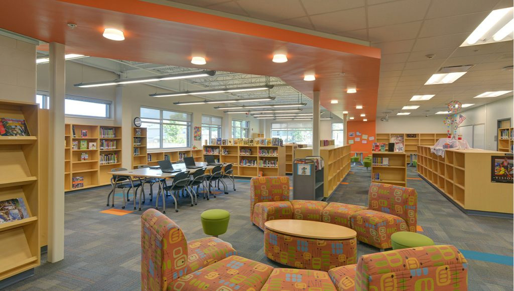 2WR and the MCSD facilities team worked together to develop a school that met LEED principals in an inspiring manner while also supporting educational process. An efficient classroom wing is tethered to the remainder of the school via a glass clad lobby that allows administration to have a presence at the front door and to other educational components. The classroom wing is oriented to allow for north-south natural light into the classrooms. Other programmatic elements such as art, technology sciences, and the cafeteria are also light filled due to large window openings that are strategically placed. 2WR utilized a palette of materials common in the area. Red brick, horizontal ribbed metal panel, storefront, and exposed steel clad the exterior of a form that reflects many local structures.