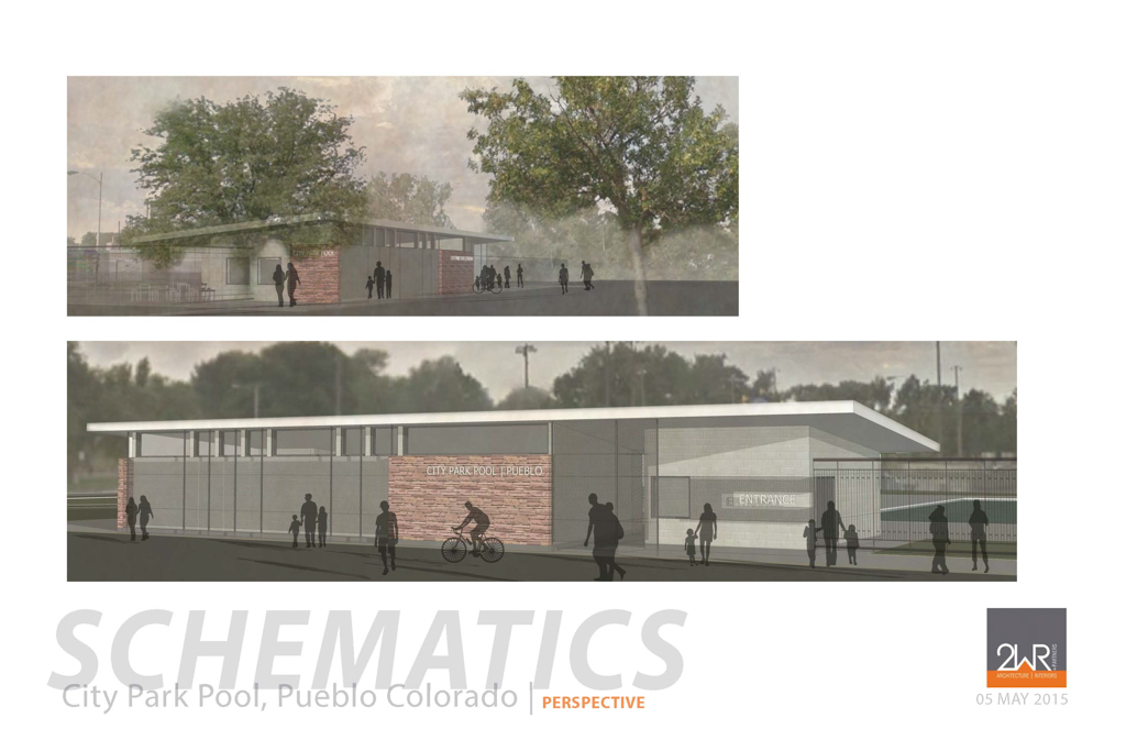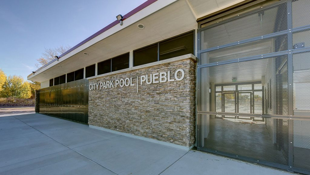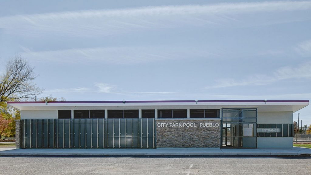 The City of Pueblo City Park Pool Bathhouse represents modern pool bathhouse design replacing an outdated facility serving Pueblo’s main outdoor community pool. The City of Pueblo bathhouse is a replacement of an outdated facility serving the main outdoor community pool. The pool facility is centrally located and is adjacent to the CityZoo, Golf Course, Baseball / Softball Fields, Dog Park,Frisbee Golf Course,and City Park.