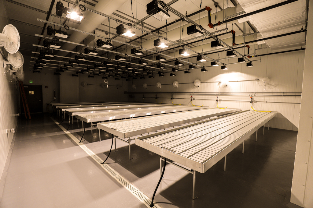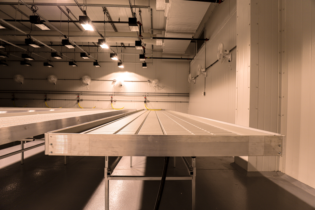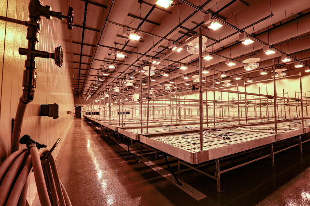 The project is approximately 26,000 square feet. The main structure is a pre- engineered metal building with IMP walls and roofing. The mechanical room, which houses the gas-fired chillers and boiler, is conventional steel. The facility’s vision was to design for cultivation operations only. Drying would take place in this new facility with trimming and all downstream operations addressed in the original facility. Thereby, the vision focused on maximizing the flower canopy within the new 26,000 sq ft building while adhering to the project’s stipulated schedule and budget.